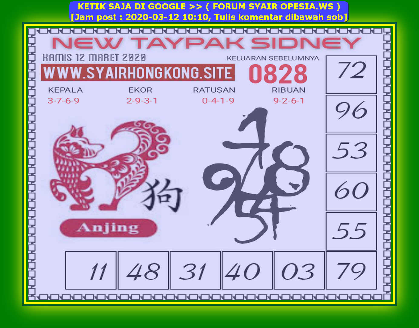 Syair Togel Sydney 12 Maret 2020 Tokosyair Com