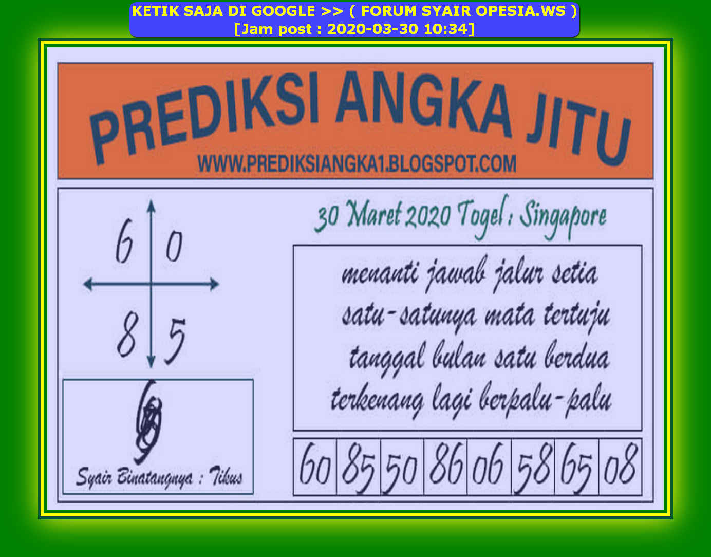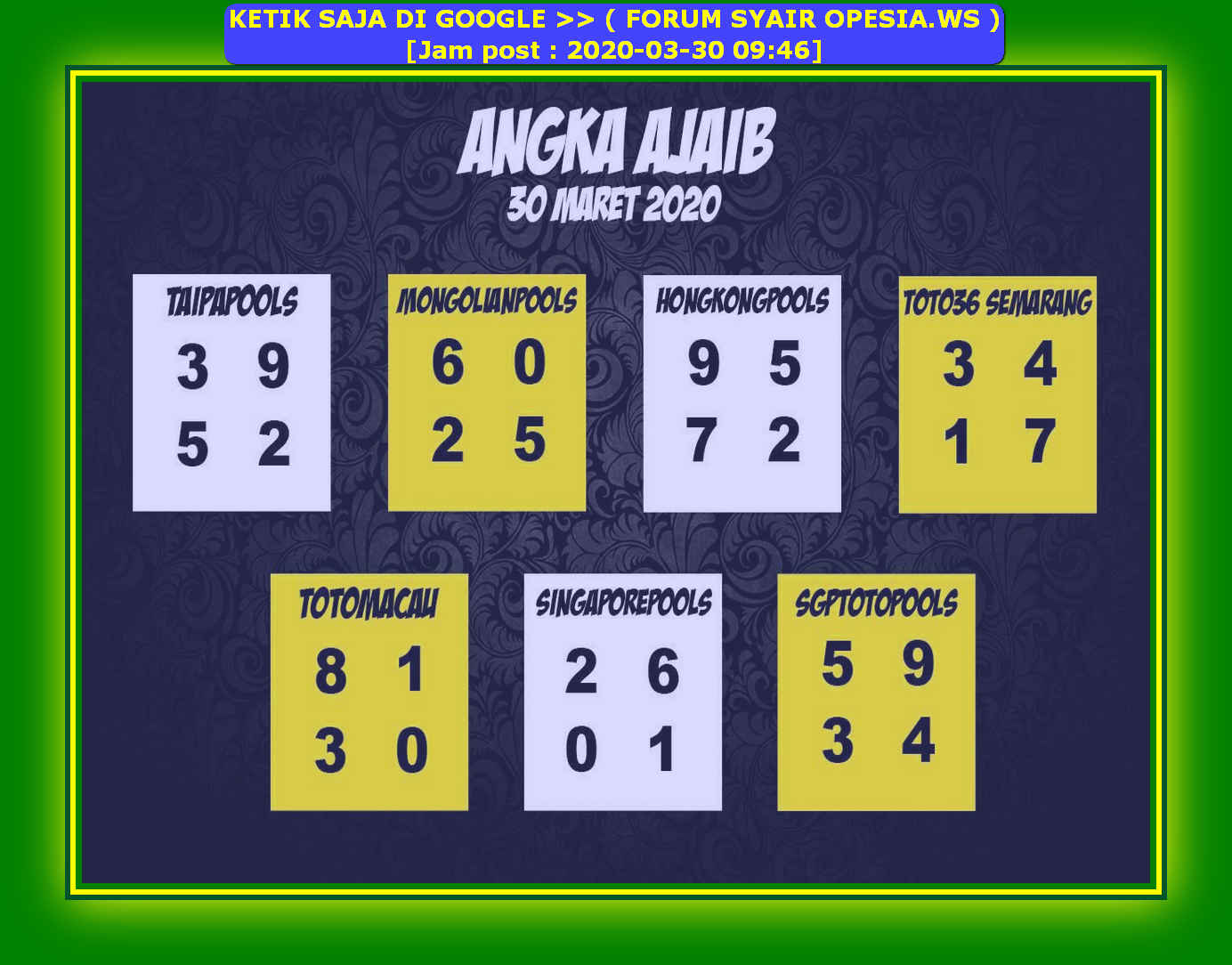 Kode Syair Singapore 30 Maret 2020 Forum Syair Togel Hongkong Singapura Sydney
