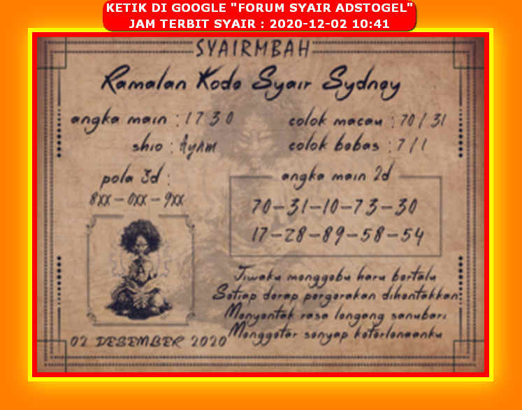 Syair Sydney Rabu 2 Desember 2020 Royal Syair