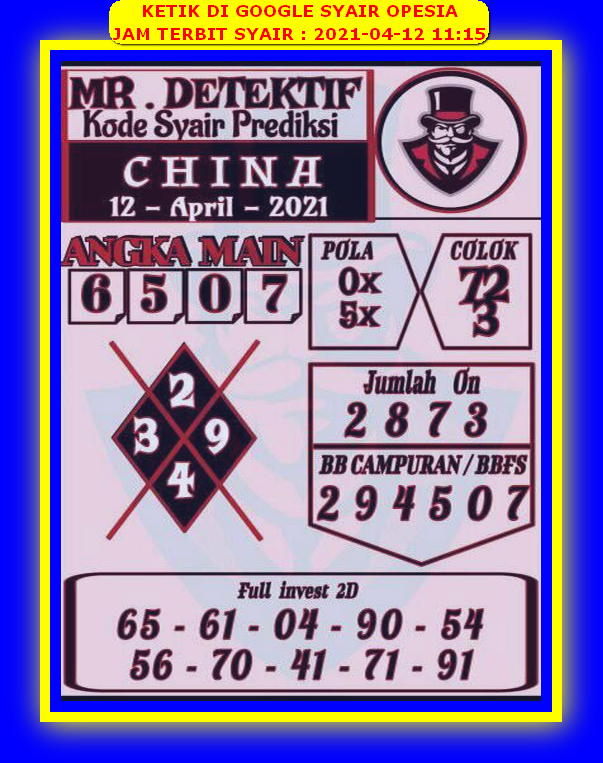 Syair Harian Sdy 12 April 2021 Kode Syair Sgp Hk Sd Motesia