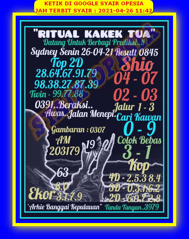 Syair Harian Sdy 26 April 2021 Kode Syair Sgp Hk Sd Motesia