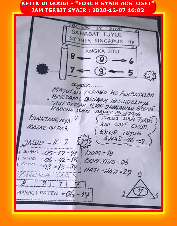 Syair Sydney Kamis 17 Desember 2020 Royal Syair