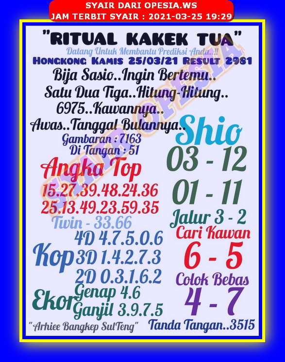 Syair Hk Hari Ini Kamis 25 Maret 2021 Opesia Official