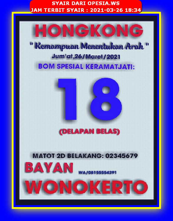 Syair Hk Hari Ini Jumat 26 Maret 2021 Opesia Official