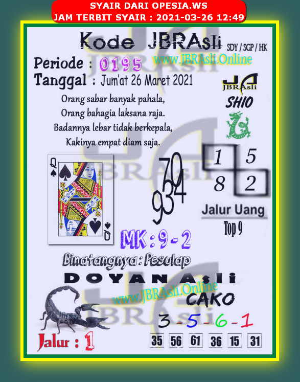 Syair Sdy Hari Ini Jumat 26 Maret 2021 Opesia Official