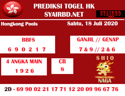 Prediksi Togel Sabtu 18 Juli 2020 Syairbd