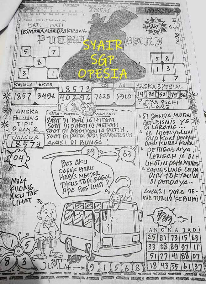 Syair Sgp Hari Ini Minggu 14 Maret 2021 Opesia Official
