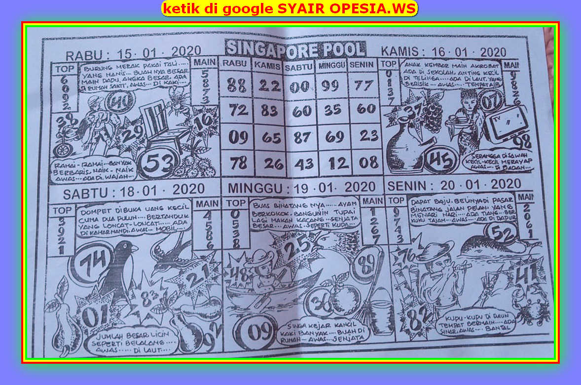 Syair Sgp Hari Ini Sabtu 15 Januari 2022 Opesia Official