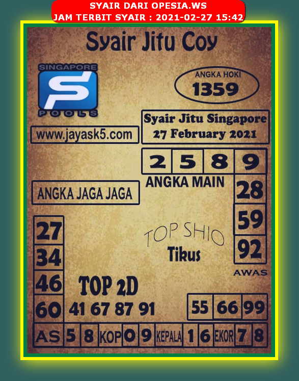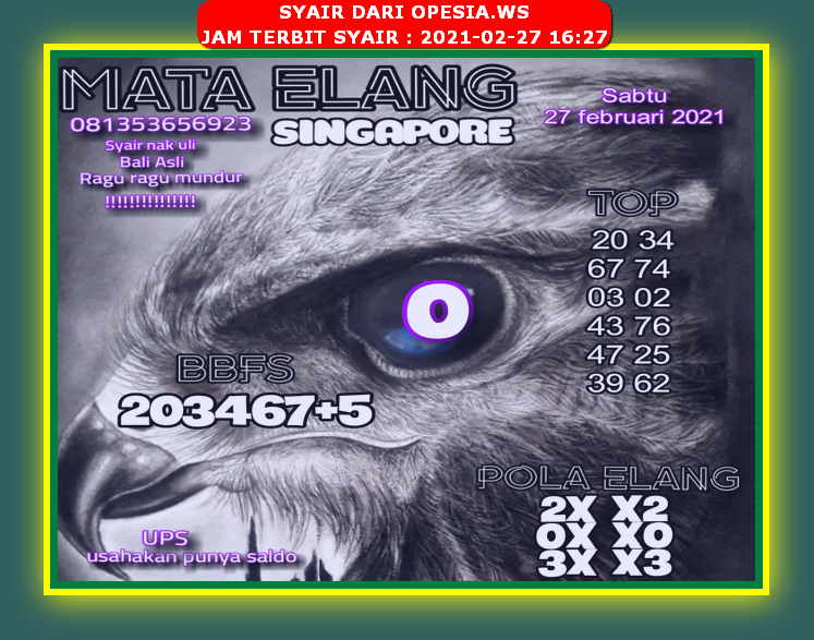 Syair Sgp Hari Ini Sabtu 27 Februari 2021 Opesia Official