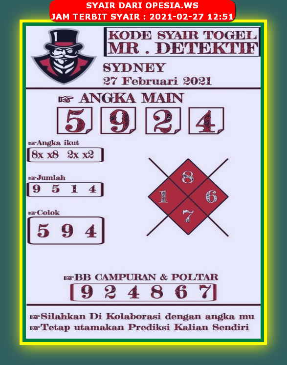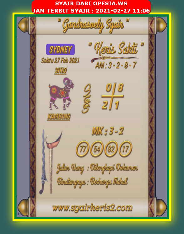 Syair Sdy Hari Ini Sabtu 27 Februari 2021 Opesia Official