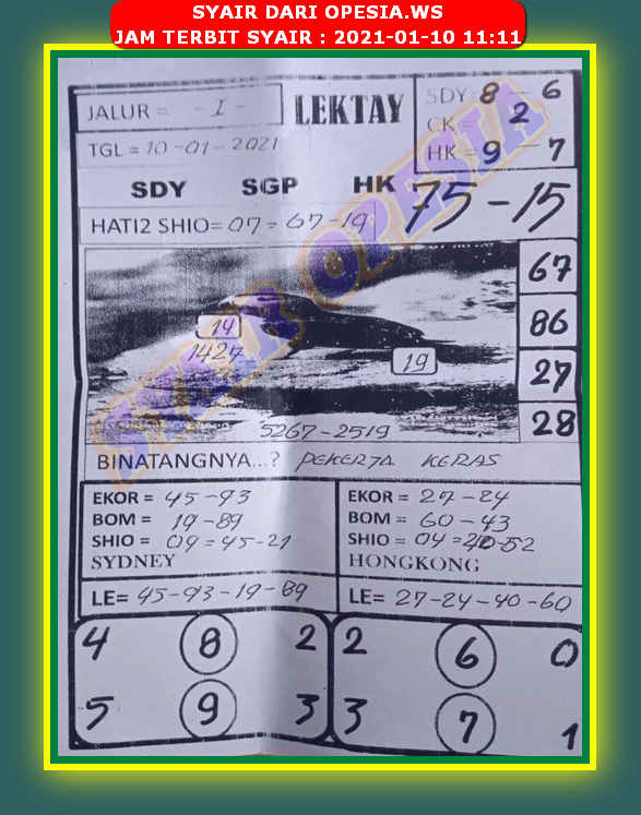 Syair Sgp Hari Ini Minggu 10 Januari 2021 Opesia Official