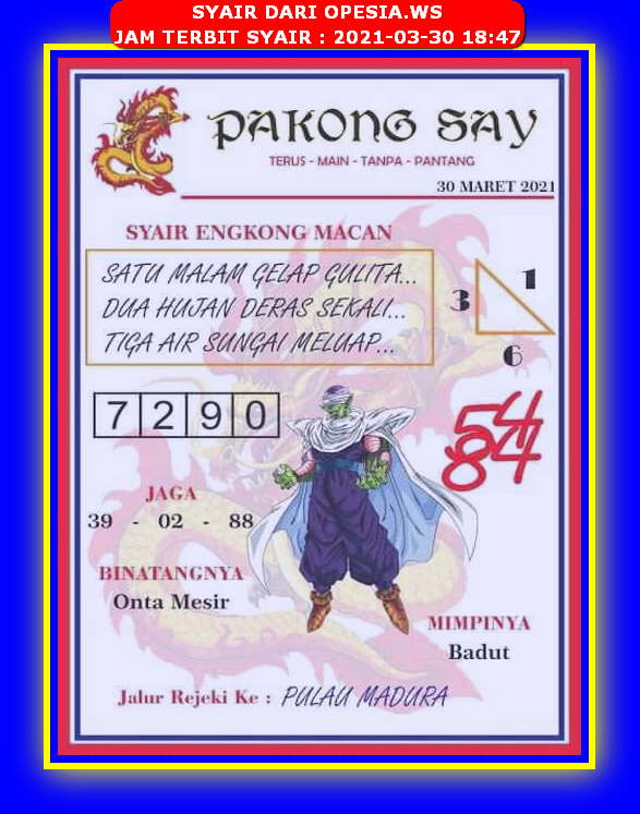 Syair Sdy Hari Ini Selasa 30 Maret 2021 Opesia Official