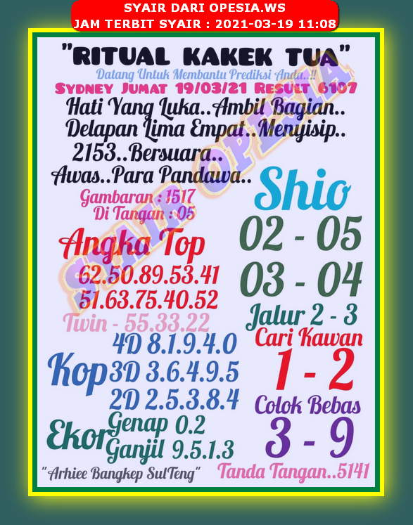 Syair Sdy Hari Ini Jumat 19 Maret 2021 Opesia Official