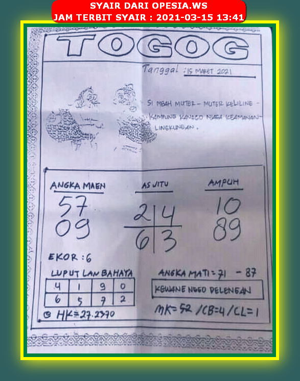 46 Www Kode Togog 21 Februari 2022 Syair Cepek