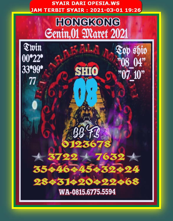Syair Hk Hari Ini Selasa 2 Maret 2021 Opesia Official