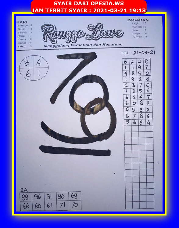 Syair Hk Hari Ini Minggu 21 Maret 2021 Opesia Official
